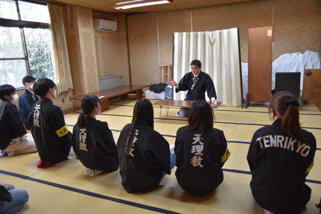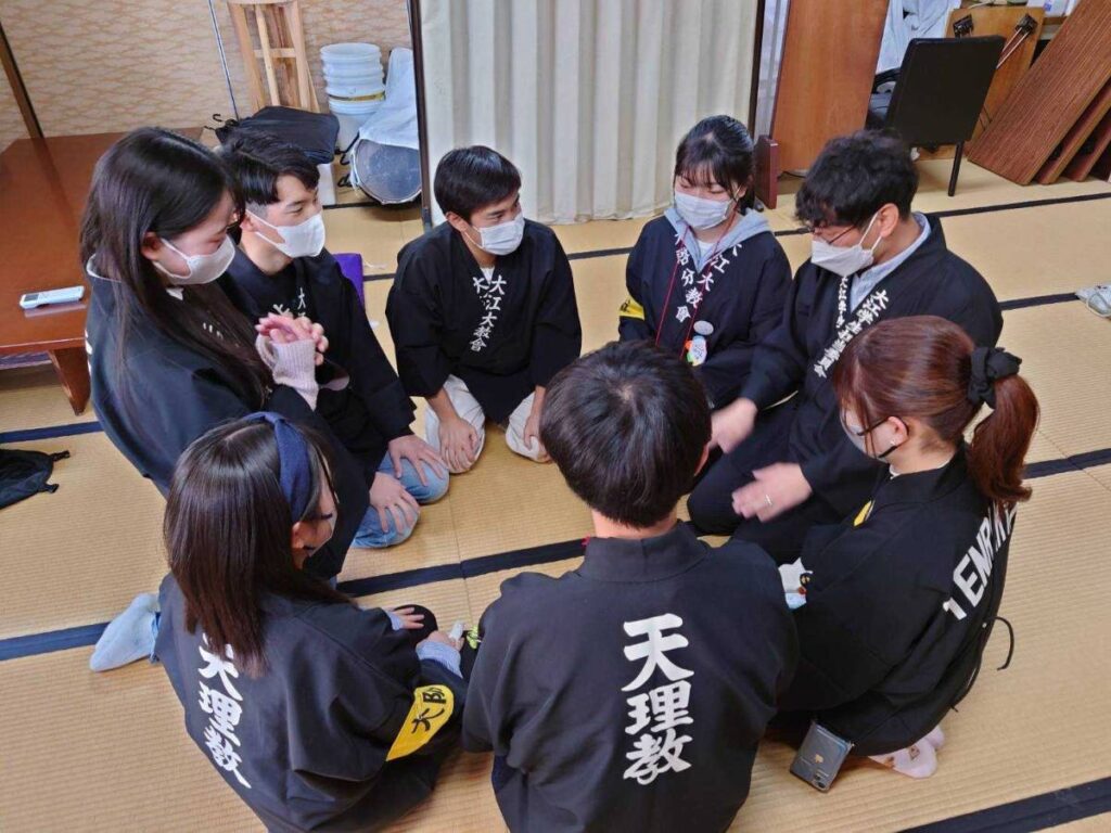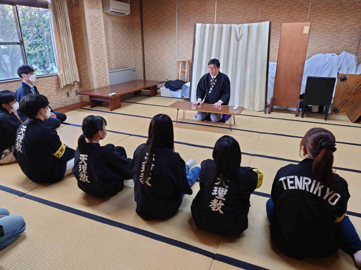 3月28日、本部中庭において春の学生おぢばがえりが開催された。今年は式典に続いての直属アワーも4年ぶりに行われることとなり、詰所には大阪や熊本から教区参加者と、当日の直属参加者の合わせて7名が集まった。