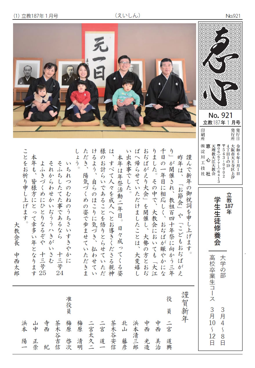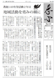 「恵心バックナンバー書庫」はこちら 恵心ダイジェスト 恵心ダイジェスト立教187年(2024) よかったらシェアしてね! URLをコピーしました! URLをコピーしました! 立教186年(2023年)12月15日「喜びTenポイント活動」記録 立教186年11月25・26日「大江おぢばがえり大会」 この記事を書いた人 hp-admin 関連記事 恵心(えいしん)187年8月ダイジェスト 2024年7月30日 恵心(えいしん)187年7月ダイジェスト 2024年7月26日 恵心(えいしん)187年6月ダイジェスト 2024年6月4日 恵心(えいしん)187年4月ダイジェスト 2024年4月17日 恵心(えいしん)187年3月ダイジェスト 2024年4月17日 恵心(えいしん)187年2月ダイジェスト 2024年1月28日 恵心(えいしん)186年12月ダイジェスト 2023年11月21日 恵心(えいしん)186年11月ダイジェスト 2023年11月20日 コメント コメントする コメントをキャンセルコメント ※ 名前 ※ メール ※ サイト 次回のコメントで使用するためブラウザーに自分の名前、メールアドレス、サイトを保存する。